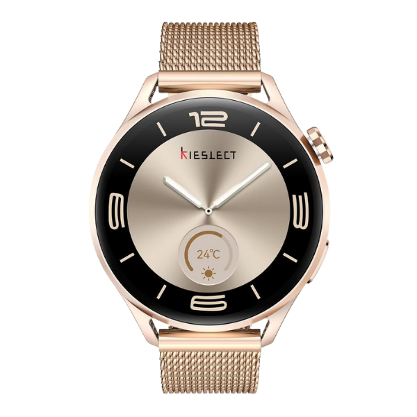 El Kieslect Lora 3 es un smartwatch diseñado especialmente para mujeres, con un diseño ligero y elegante. Su caja de aluminio, rematada con un bisel de acero inoxidable, tiene un grosor contenido y proporciona un acabado moderno y estilizado. La pantalla es una brillante AMOLED de 1.32″ con resolución 466×466 px y un brillo máximo de 850 nits, lo que permite una visualización clara incluso en exteriores soleados.